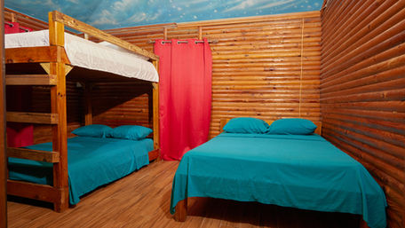 2 bedrooms (1 queen plus 1 double decked queen in each room) 3 beds total per room.